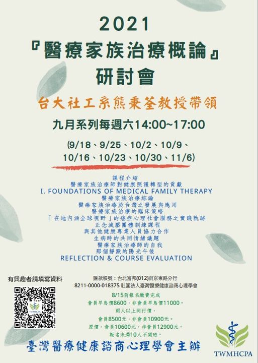 與2022年初『醫療家族治療專題研討會』(共11次)的兩系列研討會,